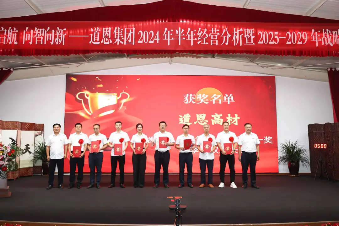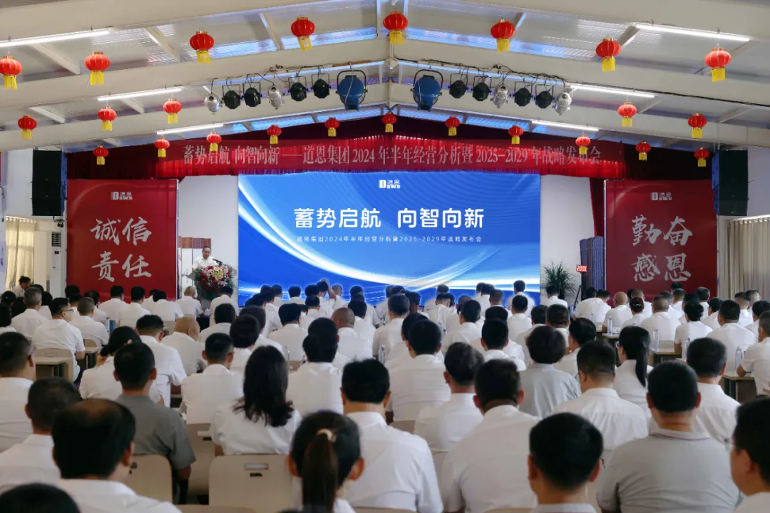 8月3日,道恩集團(tuán)在道恩商學(xué)院召開主題為“蓄勢(shì)啟航 向智向新”的2024年半年經(jīng)營(yíng)分析暨2025-2029年戰(zhàn)略發(fā)布會(huì),旨在總結(jié)經(jīng)驗(yàn)、分析問題、表彰先進(jìn)、鼓舞干勁,助推企業(yè)數(shù)智化轉(zhuǎn)型,以新質(zhì)生產(chǎn)力強(qiáng)勁推動(dòng)高質(zhì)量發(fā)展。道恩集團(tuán)董事長(zhǎng)、總裁于曉寧出席會(huì)議并講話,集團(tuán)公司董事會(huì)成員、領(lǐng)導(dǎo)班子成員、各職能部門副部級(jí)以上干部、各經(jīng)營(yíng)單位總監(jiān)級(jí)以上干部、青干班成員參加會(huì)議。