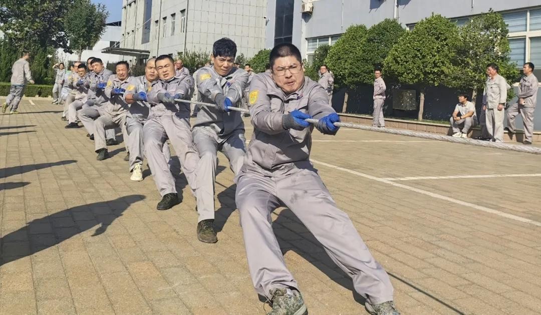 活動伊始,全體干部員工深情合唱《我和我的祖國》,以此為祖國獻禮。活動中,經過拔河、背靠背運球、跳袋接力、三磚過河、吹氣球五項比賽,參賽人員盡情揮灑汗水、釋放激情,展現了“團結拼搏,追求卓越”的道恩精神。