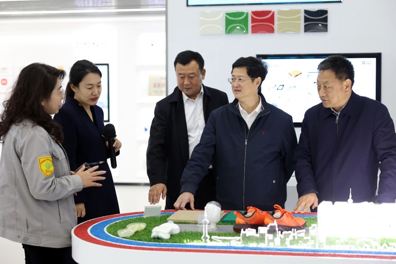 在道恩集團總部一樓大廳,郭建禮副主席聽取了有關企業(yè)發(fā)展、產(chǎn)業(yè)布局、行業(yè)地位、科技創(chuàng)新及社會責任等情況介紹。走進龍口市道恩新材料科技產(chǎn)業(yè)園,郭建禮副主席感嘆道恩“變廢為寶、綠色發(fā)展”帶來的巨變,點贊道恩實施“兩個生態(tài)”融合發(fā)展中承擔的社會責任與擔當。