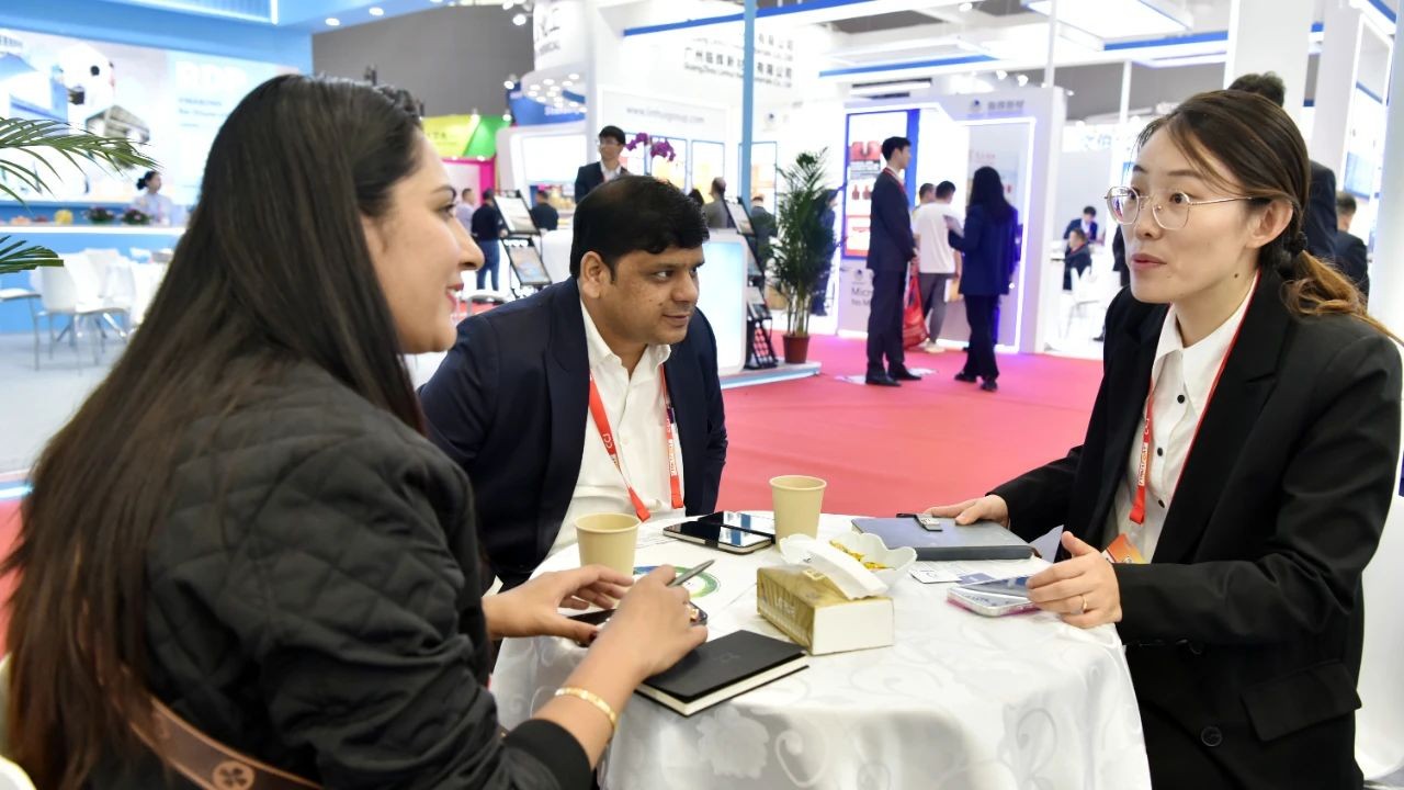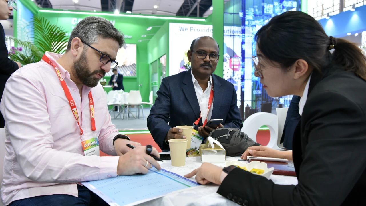 在參展現場,“一藍一白,藍白互映”的主題海報格外吸睛,《環保賦能鈦精彩》宣傳片講述著道恩“清潔生產、綠色發展”的故事,工作人員悉心為新老客戶講解產品性能、應用推廣等情況。首日來訪的客戶不乏洋紫荊、新東方、坂田油墨、天津新宇等知名客戶,或技術交流、或約定互訪、或索樣測試、或深化合作,“對道恩產品及服務非常滿意,希望加大鈦白粉的采購量!”歐洲某客戶表示。