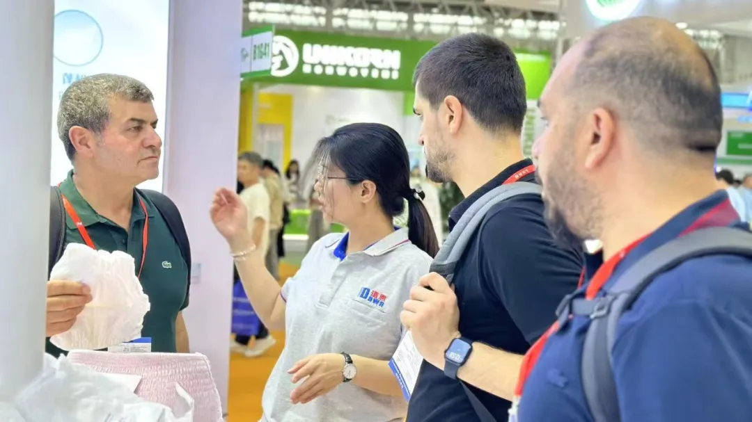 參展期間,來自越南、土耳其、馬來西亞等地的海外客戶,對道恩斯維特公司高端錦柔Bico-L3新品很感興趣,表示展會結束后加強溝通交流,推進業務進展。國內新老客戶紛紛來到錦柔系列新品體驗區,排隊親手測試超細旦產品手感。該公司副董事長慎張飛、總經理鄒秉桓與寶潔、金佰利等核心客戶深入交流,尋求共識與合作,與近10家客戶達成合作意向,讓“打造七個高端、做實四個核心”的指導思想進一步落地見效。