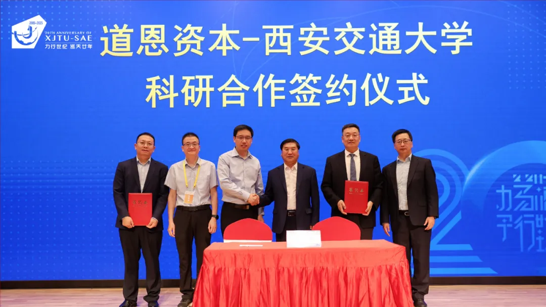 共襄空天科教盛舉,擘畫創新發展藍圖。5月10日上午,于曉寧董事長同張立群院士出席中國高校航天航空學院院長聯席會2025年會暨西安交通大學航天航空學院成立廿周年發展研討會。在與會領導、專家、嘉賓和師生的見證下,道恩集團副總裁宋慧東與西安交通大學科研院常務副院長邵金友簽署《道恩資本-西安交通大學科研合作協議》。此前的2024年7月13日,張立群校長訪問道恩集團,并見證簽署合作框架協議,開啟了校企合作之旅。