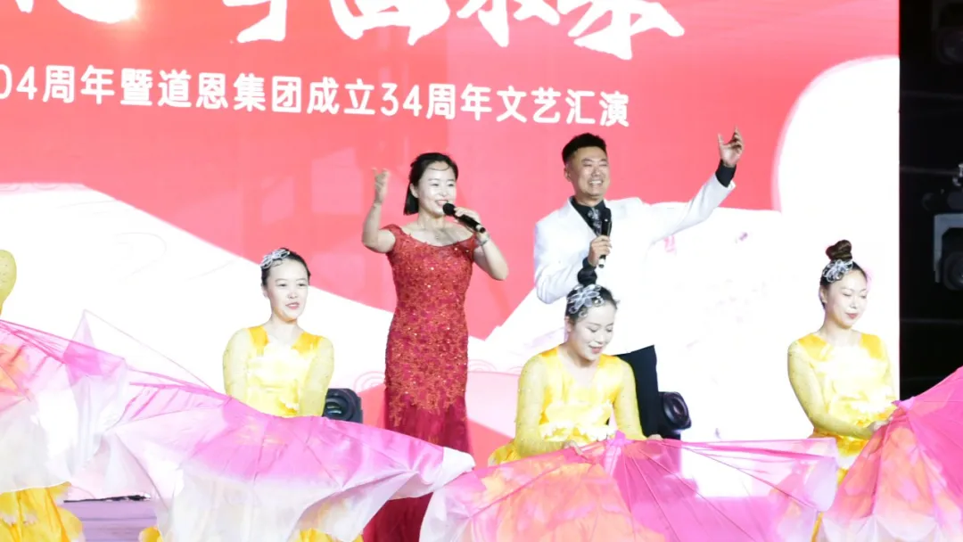 當晚19時,開場舞《花開盛世》以靈動的舞姿正式開啟晚會序幕。于曉寧董事長攜領導班子上臺致辭,“從最初的一顆塑料粒子,到榮獲國家技術發明獎二等獎;從五人創業的小團隊,成長為中國民營企業500強,道恩的每一步都凝聚著奮斗者的汗水與智慧。”他深情回顧創業歷程,講述道恩34年的成長故事。