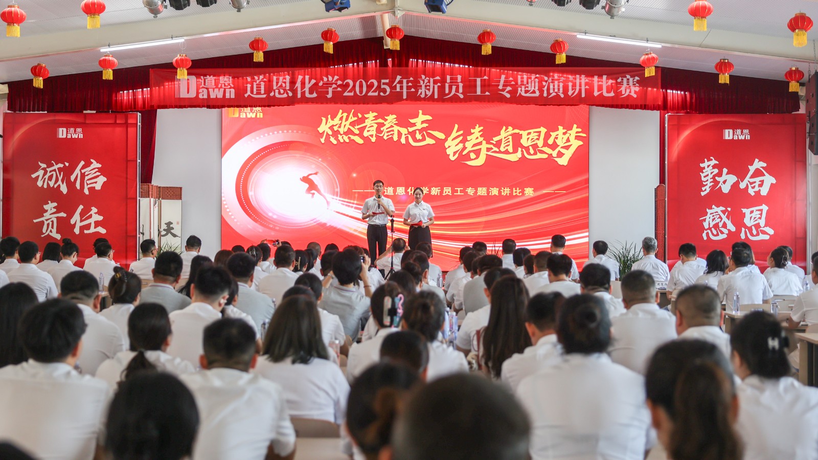 7月5日上午,道恩化學舉辦主題為“燃青春志 鑄道恩夢”的新員工專題演講比賽,旨在慶祝中國共產黨成立104周年暨道恩集團成立34周年,傳承偉大建黨精神、弘揚道恩精神,激發新一代道恩青年的奮斗熱情、凝聚青春力量。道恩集團董事長、總裁于曉寧出席活動并講話,道恩化學、化塑云商全體干部員工及各部門單位代表200余人共同見證這場青春盛會。