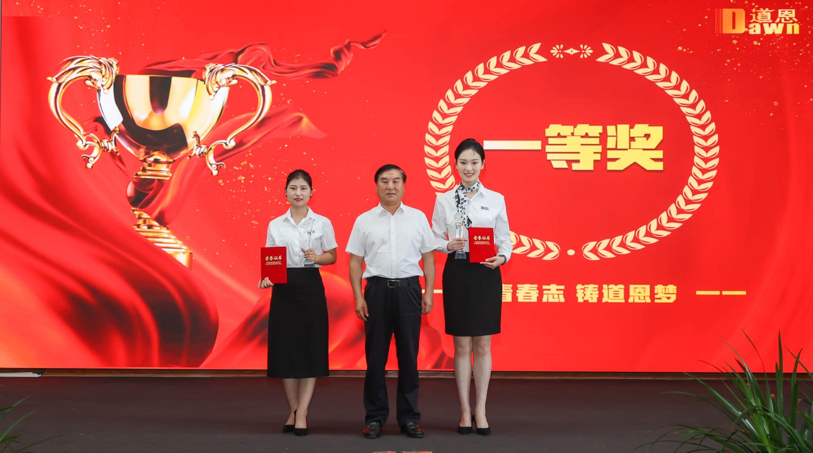 經過激烈角逐,市場部郭嘉、PE低壓部王鳳斬獲一等獎。此外比賽還評出二等獎4名,三等獎6名,集團公司領導為獲獎者頒獎并合影留念,見證青春奮斗的榮耀時刻。“青春,需要‘恰同學少年,風華正茂’的朝氣,需要‘千淘萬漉雖辛苦,吹盡狂沙始到金’的韌性,更需要‘何須淺碧輕紅色,自是花中第一流’的底氣。”一等獎獲得者王鳳說,讓我們以智慧為筆、以汗水為墨,在道恩發展的壯闊藍圖上勾勒屬于我們的時代印記。