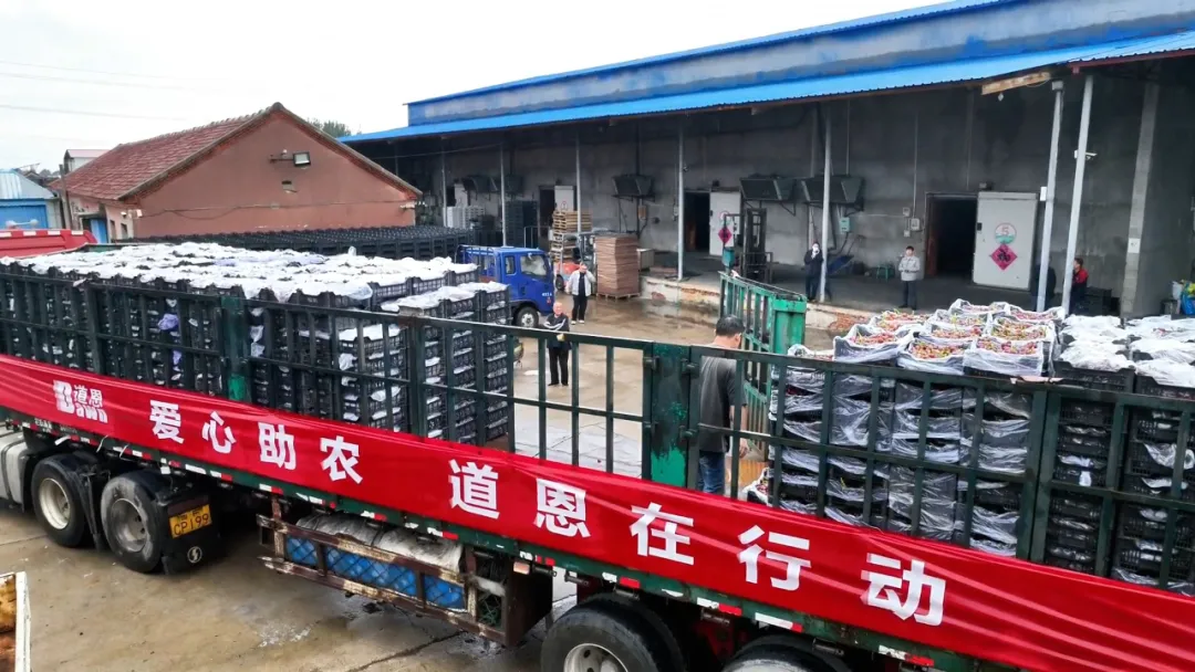 當天上午,張名怡書記帶領該鎮東方水、尹村、小金家村、黃城集村、下河頭村等村居負責人,專程來道恩集團感謝企業幫助果農銷售葡萄的善行義舉。他把寫有“為民解憂辦實事 愛心助農暖人心”的錦旗,贈送到集團副總裁王永放的手上。