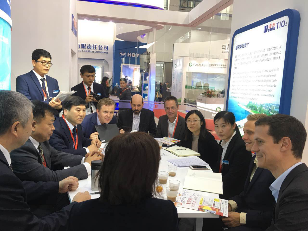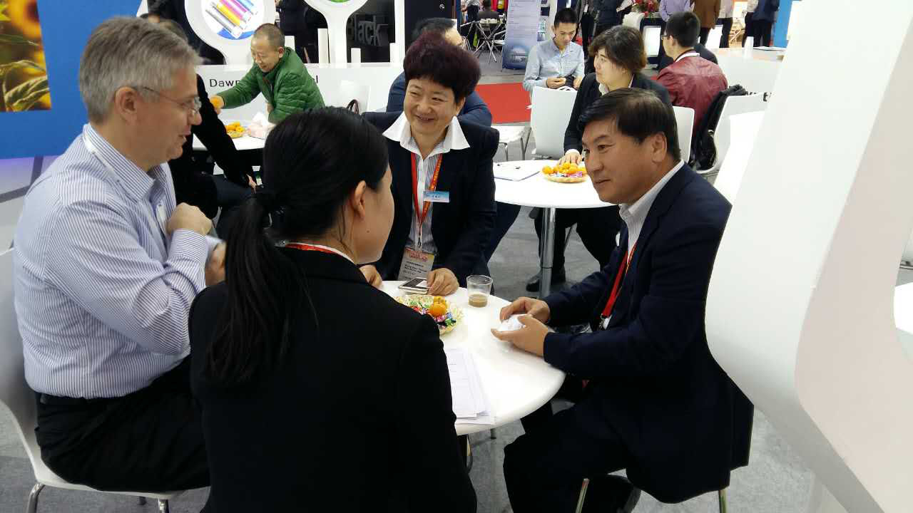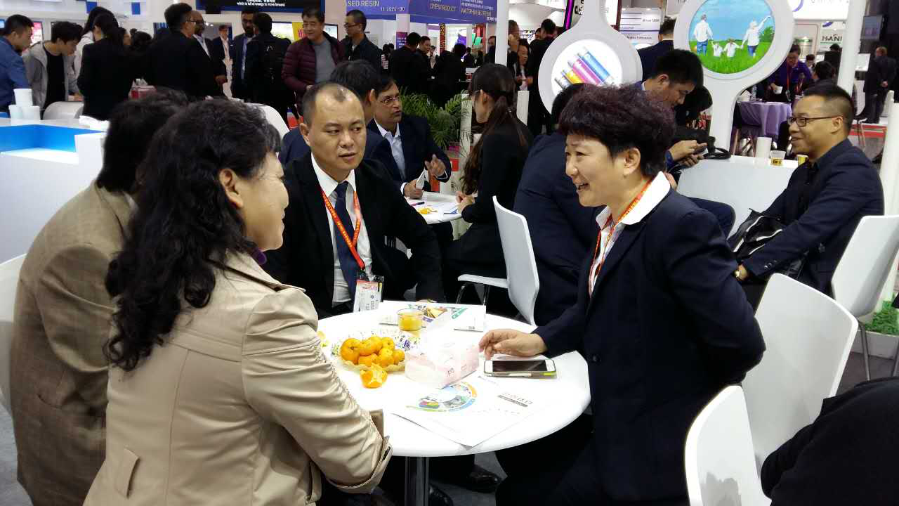 作為世界第三大油墨生產(chǎn)商,盛威科油墨有限公司全球采購(gòu)總監(jiān)NevenBarctel慕名訪問道恩展臺(tái),于曉寧總裁與客人進(jìn)行友好交流。雙方就建立長(zhǎng)期戰(zhàn)略合作伙伴關(guān)系達(dá)成共識(shí),共同研發(fā)油墨專用鈦白粉,成為盛威科全球統(tǒng)一牌號(hào)。道恩集團(tuán)常務(wù)副總裁索延輝用流利的日語和日本立邦洽談2017年合作事宜,經(jīng)過技術(shù)交流,最終確定明年第一季度訂單。