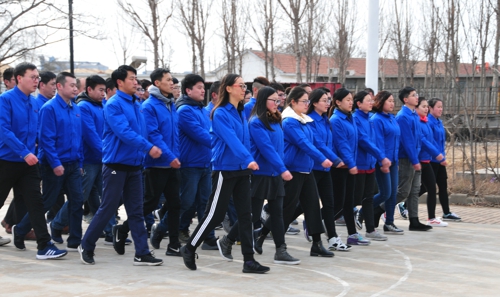 與往年新員工崗前訓練不同的是,今年增加了軍訓環節。春寒料峭時,乍暖還寒涼,參訓新員工克服寒冷帶來的不利影響,整齊的步伐、統一的著裝、響亮的口號,成為一道亮麗的風景線。