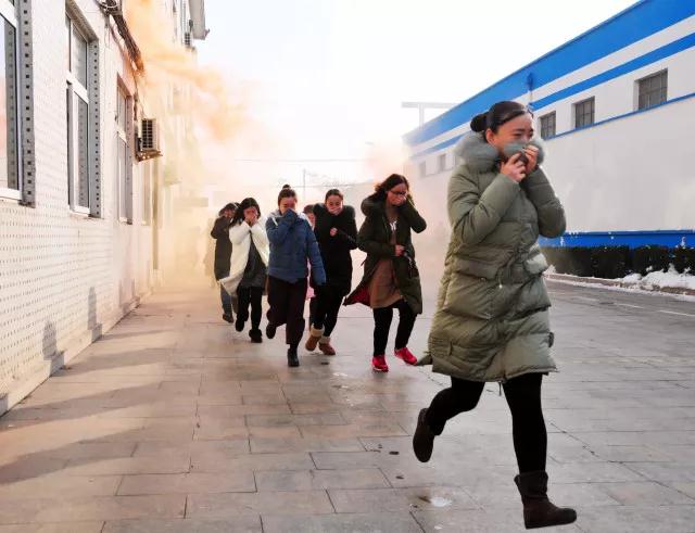 警報聲響起,辦公樓內所有人員在疏散指揮人員的引導下,快速緊急疏散,彎腰捂鼻,有序撤離至安全區域。集團應急救援隊伍滅火組、救援組、通訊組接到命令,緊急攜帶裝備向指揮報到。疏散引導組統計人數,發現1名員工未及時撤出,向指揮報告,同時通訊組撥打120救護電話并派人到路口引導。