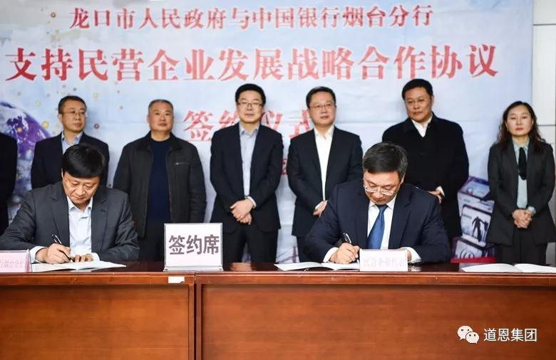 12月25日,龍口市人民政府與中國銀行股份有限公司煙臺分行舉行支持民營企業(yè)發(fā)展戰(zhàn)略合作協(xié)議簽約儀式,龍口市市長呂波、中國銀行山東省分行副行長景在倫出席活動,中國銀行、人民銀行、銀監(jiān)局及有關(guān)部門相關(guān)領(lǐng)導(dǎo)50余人參加活動。會上,道恩集團副總裁宋慧東作為全市唯一的民營企業(yè)代表進行發(fā)言,并代表道恩簽約。