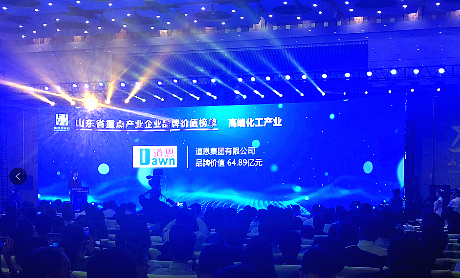 5月10日, 2019年“中國品牌日”品牌發布會暨品牌高端論壇在山東濟南隆重舉行。會上,道恩集團以品牌價值64.89億元,位列“2019年山東省民營企業品牌價值100強”第21名;同時,榮登“2019年山東省高端化工產業品牌價值10強”。道恩股份榮登“2019年度山東省制造業高端品牌培育企業”榜單,這是該公司第2次入圍該榜單。
