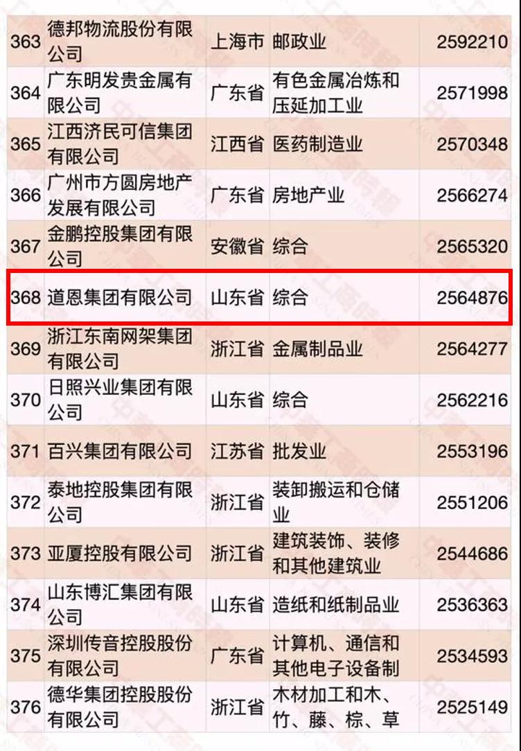 位列368名!道恩在中國民營企業(yè)500強位次大幅前移