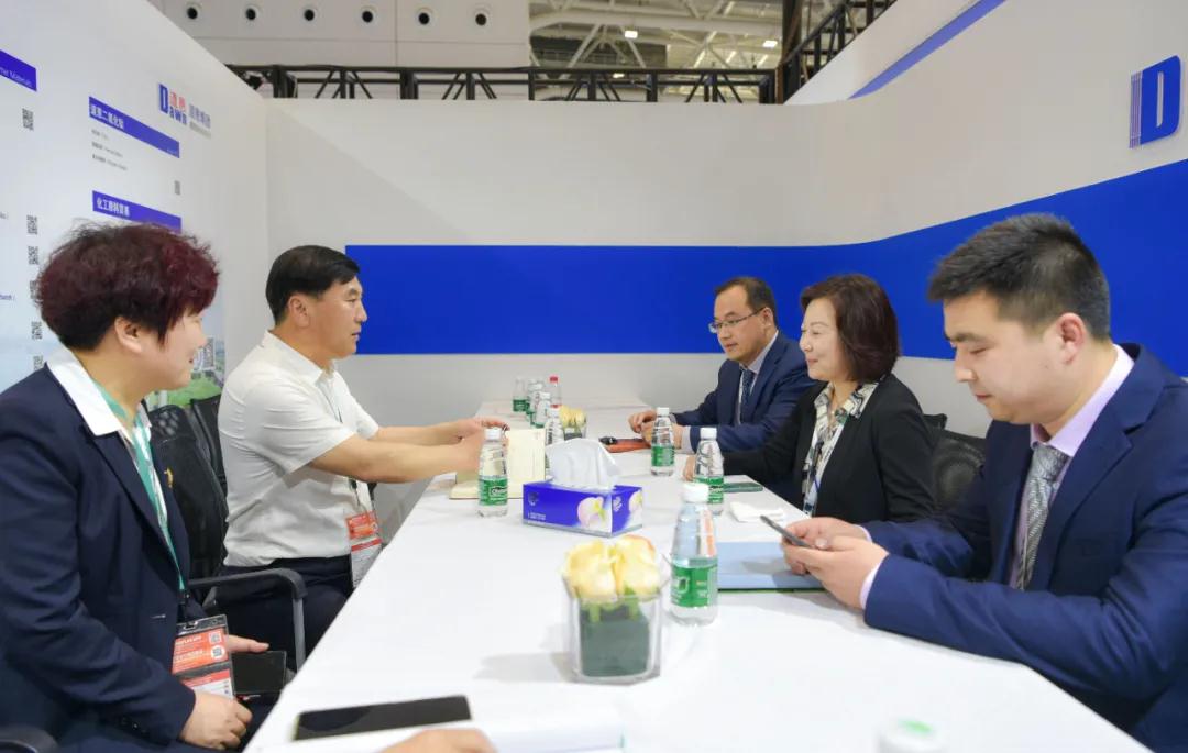 下午,國家能源集團副總裁張繼明蒞臨道恩展位訪問交流,于曉寧董事長向客人介紹了打造產品鏈、產業鏈和企業鏈的情況。張繼明副總裁對道恩的研發能力、產品性能以及硬核抗疫的表現給予積極評價。