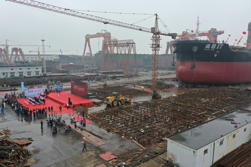 嚴(yán)林華董事長在致辭中表示,“道恩17”輪開工以來,振鶴人群策群力,弘揚匠心精神,付出了辛勤的汗水和智慧。“中國航運事業(yè)是可持續(xù)發(fā)掘的藍(lán)海,以‘道恩17’輪為紐帶,相信在未來的日子里,振鶴船業(yè)能與道恩將海運事業(yè)推向新的高度。”
