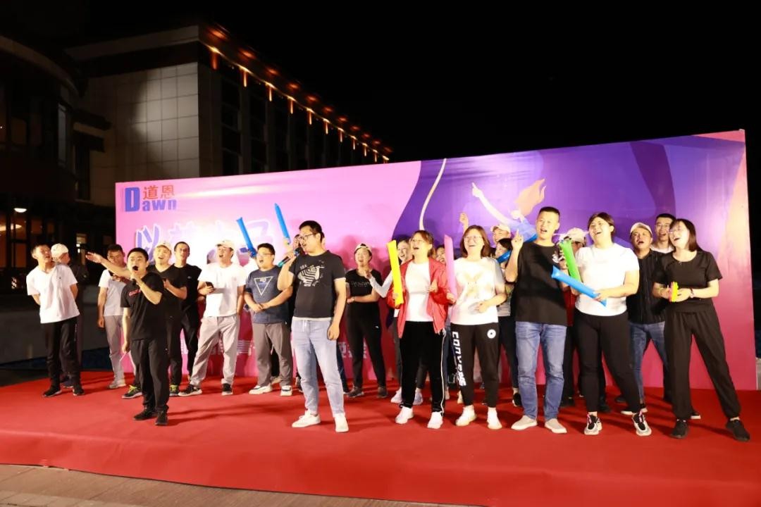 舞蹈、歌曲、游戲……晚會中,學員們自編、自演了精彩的節目,展示了道恩人朝氣蓬勃的精神風貌。伴隨著青春的旋律和動感的節拍,大家合唱《道恩之歌》,喊出“三共”口號,晚會氣氛達到高潮。值得一提的是,現場的火熱氣氛,吸引了相鄰場地北京銀行的朋友,“我們使用過道恩口罩,對道恩在疫情期間作出的貢獻和擔當表示欽佩。祝愿道恩蒸蒸日上、再創輝煌!”
