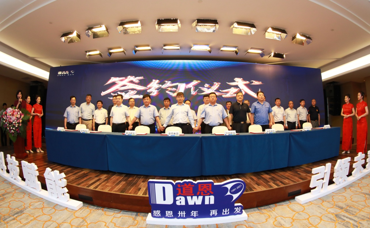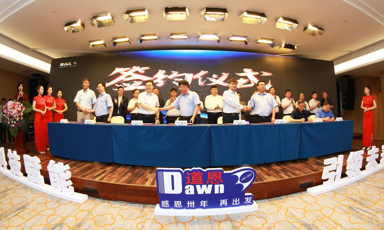 現(xiàn)場簽約,是此次大會(huì)的重頭戲。道恩集團(tuán)與中國燃?xì)狻⒀娱L石油、陜煤集團(tuán)蒲城清潔能源化工、北京化工大學(xué)、沈陽化工大學(xué)等10家單位進(jìn)行簽約,合作開發(fā)生物降解塑料、高端聚丙烯等產(chǎn)品,探尋產(chǎn)學(xué)研合作新路子,為道恩集團(tuán)發(fā)展賦能,為創(chuàng)造美好生活賦能。