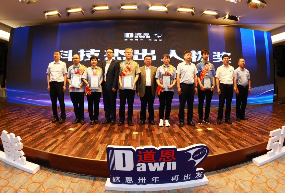 當(dāng)天上午,道恩集團(tuán)在龍口工商聯(lián)合大酒店舉行了以“科技賦能 引領(lǐng)未來”為主題的科技創(chuàng)新大會(huì),回顧總結(jié)了30年來道恩科技創(chuàng)新發(fā)展的歷程,對在科技戰(zhàn)線上做出突出貢獻(xiàn)的科技工作者和優(yōu)秀科研成果進(jìn)行表彰獎(jiǎng)勵(lì)。