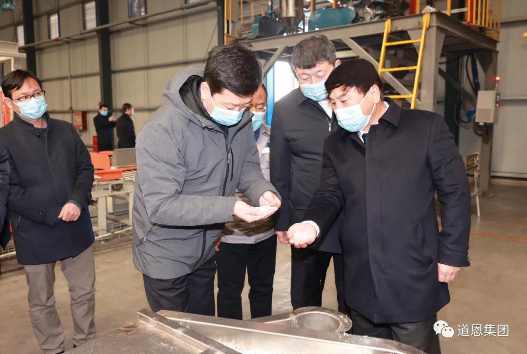 2月16日,煙臺市副市長沈建來道恩調(diào)研防疫物資生產(chǎn)情況,對道恩硬核抗疫的表現(xiàn)給予肯定,鼓勵企業(yè)以科技創(chuàng)新提高產(chǎn)品附加值,不斷提升核心競爭力,持續(xù)保供高品質(zhì)防疫物資。龍口市市長李萬平、副市長聶永茂,道恩集團(tuán)董事長、總裁于曉寧陪同調(diào)研。