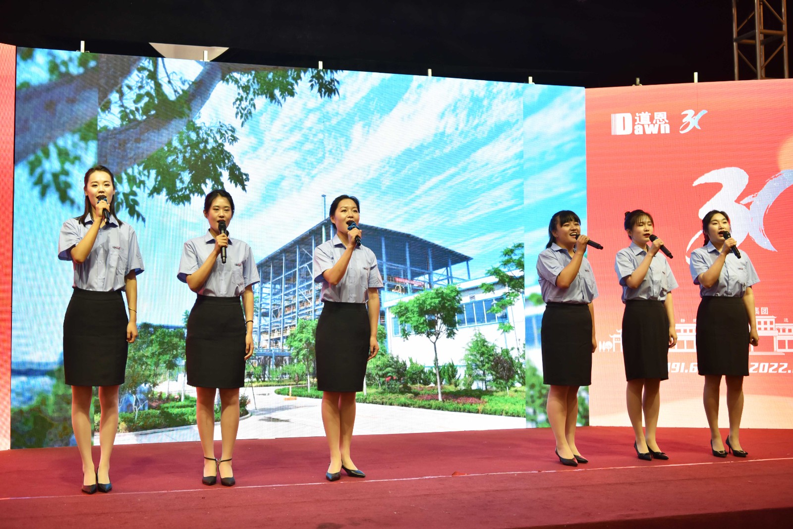 流金歲月,共譜芳華。晚會上,由道恩集團員工自編、自導、自演的節(jié)目,融合了歌曲、舞蹈、相聲、薩克斯等多種藝術形式,展現(xiàn)了道恩人多才多藝的風采,表達了道恩人“感黨恩、聽黨話、跟黨走”信心和決心,抒發(fā)了愛崗敬業(yè)的情懷。整場晚會的節(jié)目精彩連連,高潮迭起,演員們的出色表現(xiàn)贏得了陣陣掌聲,給現(xiàn)場觀眾帶來了無盡的歡笑與驚喜。