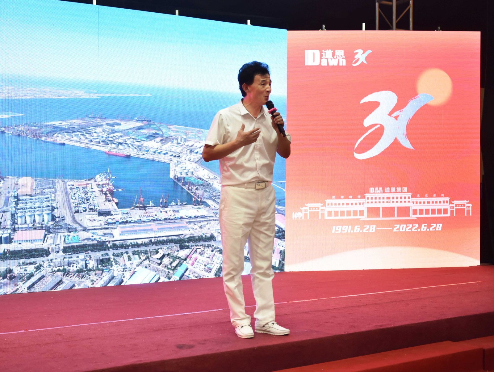 “三十一年間,道恩有太多的收獲和感慨,有太多的辛酸和喜悅,更重要的是有大家一路攜手同行!”于曉寧董事長攜道恩集團領導班子成員上臺致辭,深情回顧了道恩31年發(fā)展之路,圍繞企業(yè)文化、戰(zhàn)略目標、產(chǎn)業(yè)布局、園區(qū)建設等進行介紹,與大家共享道恩31年的高質(zhì)量發(fā)展成果。