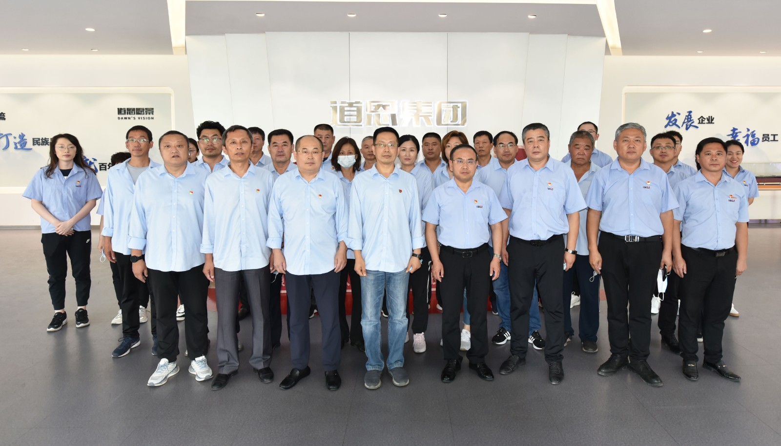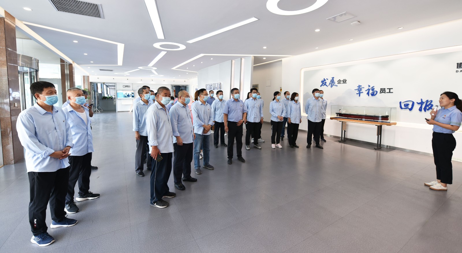 在道恩集團(tuán)總部,華電龍口黨員干部們共同參觀了總部大廳,聽取了道恩的企業(yè)介紹、發(fā)展概況、企業(yè)文化建設(shè)等情況。道恩集團(tuán)黨總支書記、常務(wù)副總裁肖輝,行政管理部部長(zhǎng)楊景毅參加活動(dòng)。
