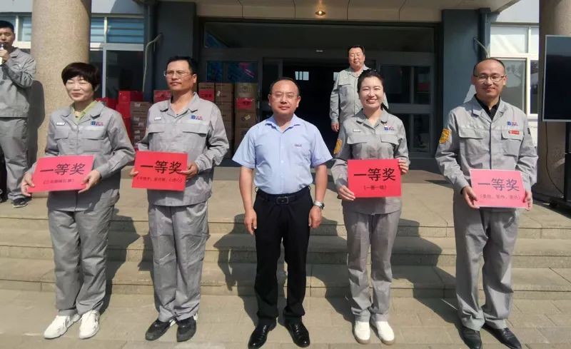 經(jīng)過激烈的角逐,由污控車間組成的“夢(mèng)之隊(duì)”,獲得“要急、要爭、要搶”比賽第一名;由表面處理車間組成的“飛虎隊(duì)”,獲得“一圈一鏈”比賽第一名;由生產(chǎn)、倉儲(chǔ)、電儀車間組成的“同心生產(chǎn)隊(duì)”,獲得“手挽手、肩并肩、心連心”比賽第一名;由水解車間組成的“磐石隊(duì)”,獲得“三共趣味比賽”比賽第一名。肖輝常務(wù)副總裁為獲得一等獎(jiǎng)的代表隊(duì)頒獎(jiǎng)并合影留念。