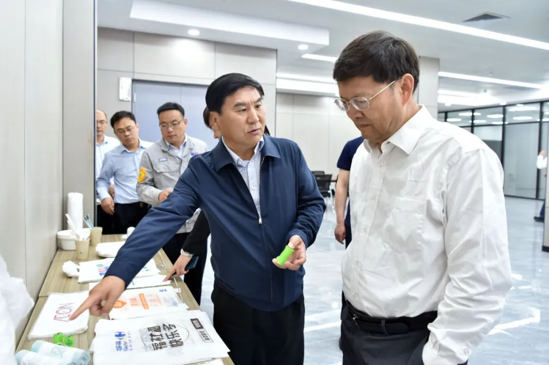 在道恩降解材料公司中央控制室,譚天偉校長觀看了龍口市道恩新材料科技產(chǎn)業(yè)園宣傳片,聽取企業(yè)概況、園區(qū)建設(shè)、科技創(chuàng)新、鏈?zhǔn)竭\作、綠色發(fā)展等情況的匯報,了解可降解材料的產(chǎn)品性能和市場應(yīng)用,他對道恩“錨定萬人千億園區(qū),打造世界級綠色低碳高端新材料制造基地”的目標(biāo)定位表示贊賞。