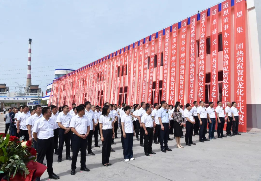 龍口市政府副市長趙靜,龍口經濟開發區黨工委副書記、龍港街道黨工委書記秦毅,道恩集團董事長、總裁于曉寧,常務副總裁肖輝及集團公司班子成員出席活動;各職能部門部長,經營單位總經理、人事行政、項目建設等分管負責人,及雙龍化工班子成員、員工代表參加活動。