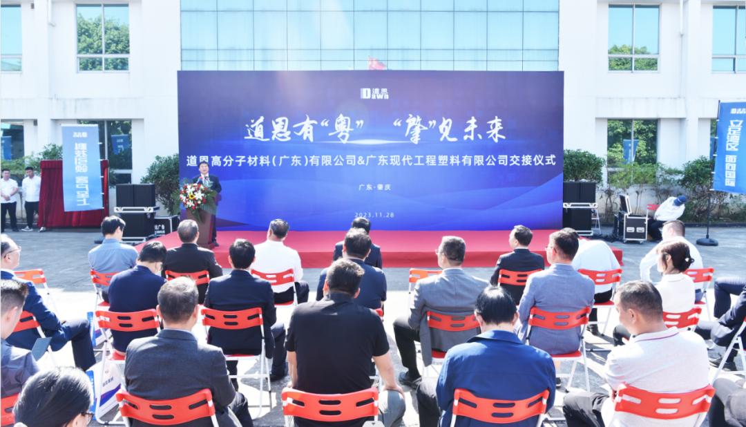 道恩集團副董事長索延輝,副總裁宋慧東,道恩股份總經理田洪池,青島新材料公司總經理譚偉宏,道恩(廣東)公司總經理吳亞文出席活動。肇慶高新區有關部門負責人,原廣東現代工程塑料有限公司法人長金泰相及其團隊,佛山海爾洗衣機、理士電源、小鵬汽車、博仕達新材料等客戶代表,以及道恩集團有關部門、單位員工代表,見證這一歷史性時刻。