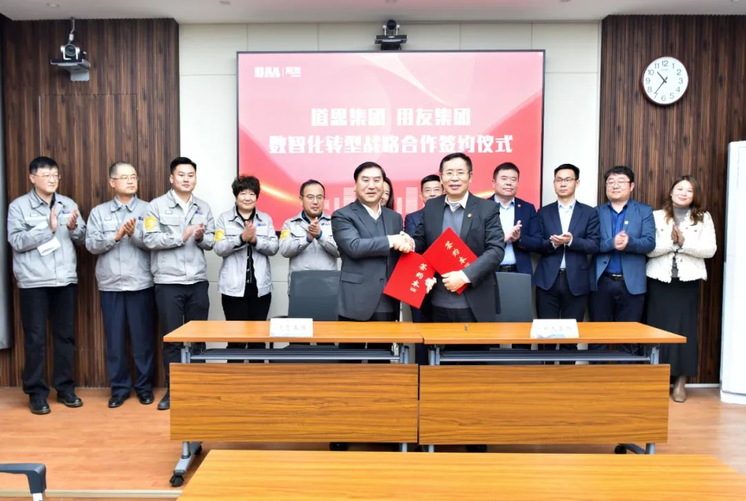 12月14日上午,道恩集團與用友集團在山東龍口舉行數智化轉型戰略合作簽約儀式,由此開啟了道恩數智化轉型升級之路。用友集團董事長王文京,道恩集團董事長、總裁于曉寧出席儀式并代表雙方簽署協議。